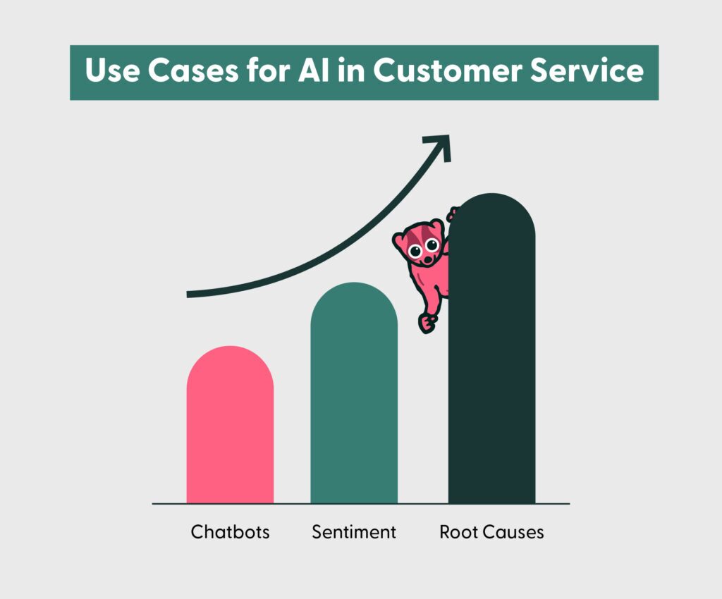 Below are three ways you can incorporate AI into your operations to improve your customer service. We’ve listed these use cases from the most basic (using chatbots) to more advanced ones (root cause analysis):