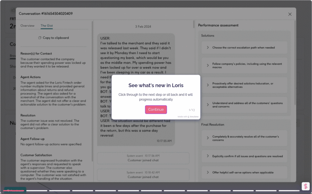 The Product and Engineering teams at Loris have been busy over the last few months delivering some great capabilities to help customer service teams shorten the time it takes them to understand and serve their customers. And while there are dozens of great features that have been released since our last announcement in December, today we’re going to focus on four that we’re seeing the biggest impact for our clients: automatic conversation summarization, an enhanced assessment performance dashboard, the ability to better control conversation assessment, and a better analyst calibration experience.
