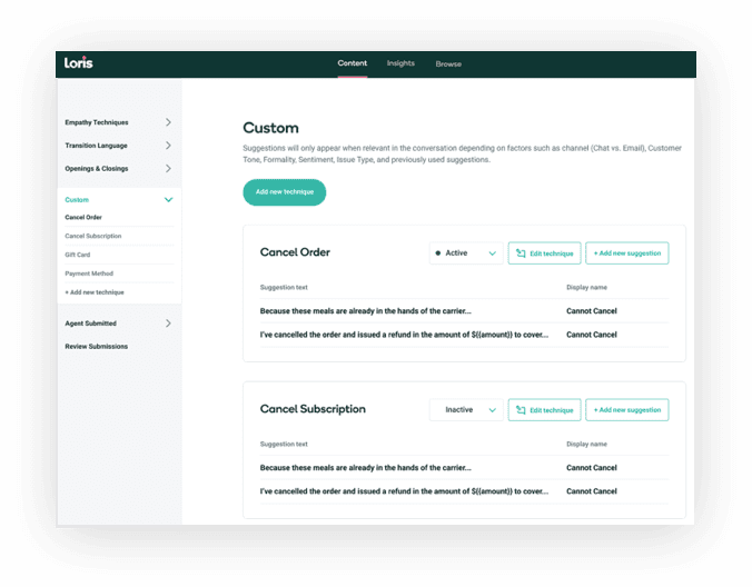“We originally came to Loris with a mission to improve our agent’s productivity and to ensure that even newer agents could ramp up faster. Appeasements were not an initial focus. However, the impact that Loris demonstrated in just six weeks has been incredible, with a reduction in credits issued by 36% and a projected hundreds of thousands of dollars in savings for our business . We now plan to further roll out Loris to additional channels.”
