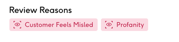 Loris Reasons to Review flag conversation outliers to identify everything from regulatory threats to manager escalations to profanity to frustration. Though infrequent, these provide a quick way to triage conversation review and map risks to your business by agent, team, or AI Agent.