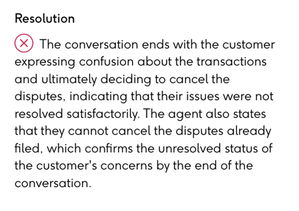 Without Resolution, you could assume positive sentiment in customer conversations means that the customer is happy with the overall experience. But without actually resolving issues, you’ll see higher costs from repeated contact or miss signals from frustrated customers who never come back.